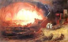 Soddom --"Sodom" is from Greek spelling of the biblical town of Sodom, destroyed in the OT alone by a hail of fire. The odd thing is that the word seems to have a plural ending on it.